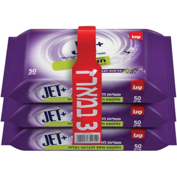 ג'ט+ מטליות לחות לניקוי כללי בתוספת חומץ בניחוח לבנדר