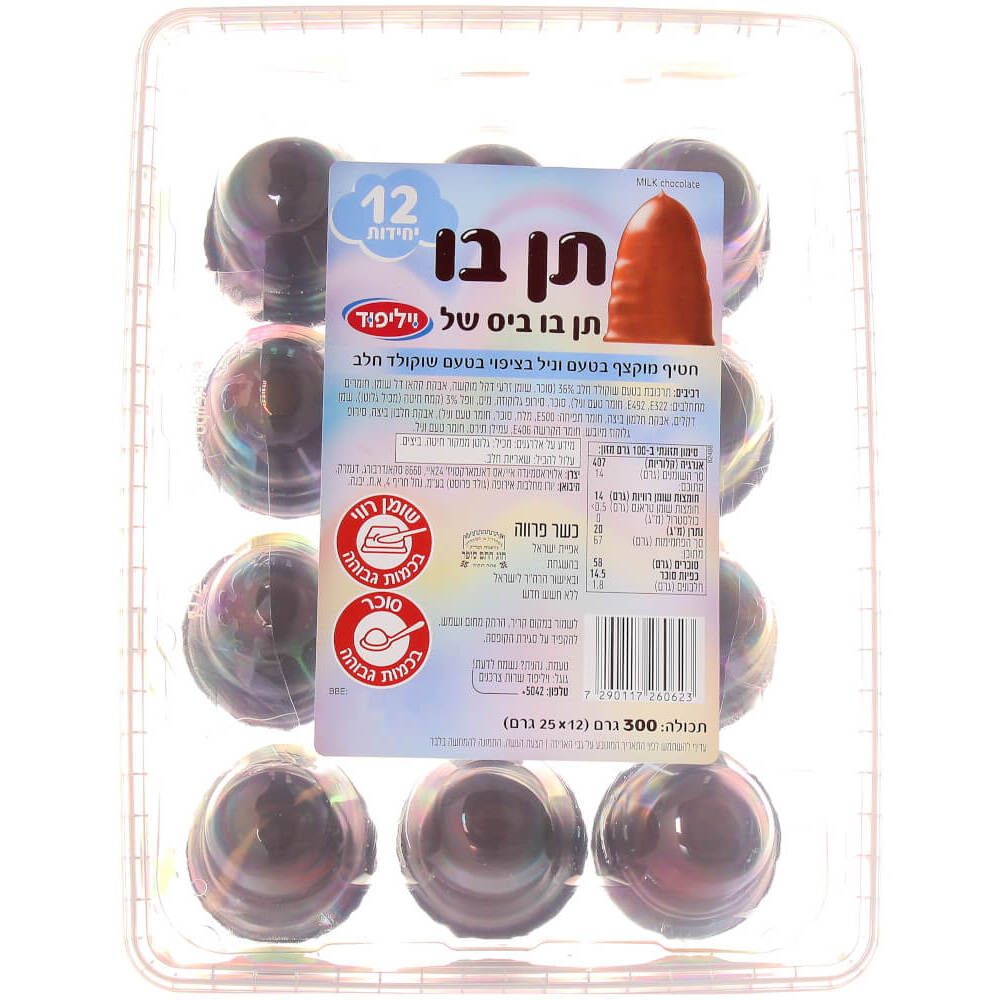 כמות של תן בו חטיף מוקצף בטעם וניל בציפוי בטעם שוקולד חלב